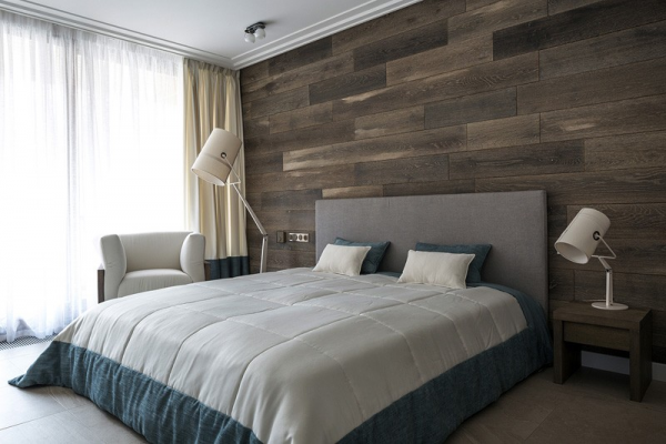 Tampak hangat dengan sentuhan dinding kayunya ya moms.