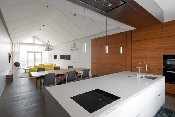 Desain minimalis dengan penekanan pada kesederhanaan dan ruang terbuka menjadi populer di Rusia. Konsep open-plan dengan ruang yang terbuka dan aliran yang lancar antara area ruang tamu, ruang makan, dan dapur sering diterapkan.