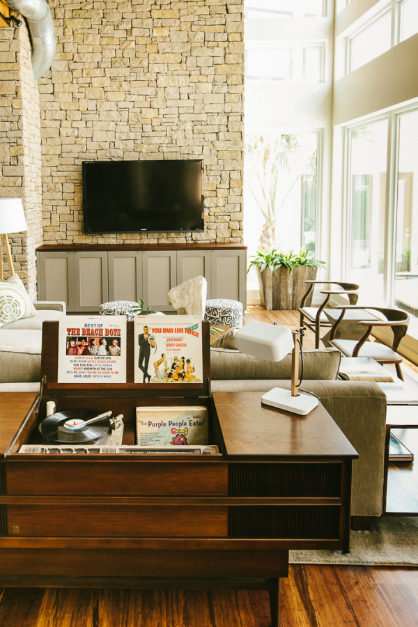 Sentuhan musik dan koleksi vintage dapat menjadi tambahan yang menyenangkan dalam gaya interior tahun 70 dan 80an. Misalnya, menggantung poster band favorit di dinding atau menampilkan koleksi piringan hitam vintage sebagai hiasan. Sentuhan musik dan koleksi vintage ini memberikan kesan personal dan mencerminkan minat serta kepribadian Anda dalam desain interior.