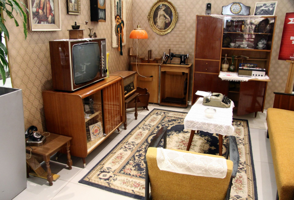 Interior 70-80an dengan tv tabung hitam-putihnya.