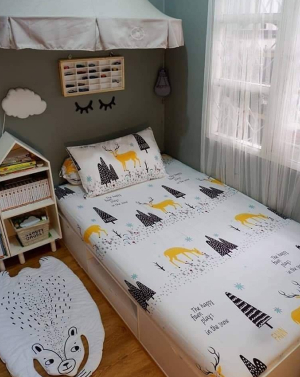 - - Gunakan bantal dan selimut dengan warna dan motif yang menarik untuk menambah kenyamanan.