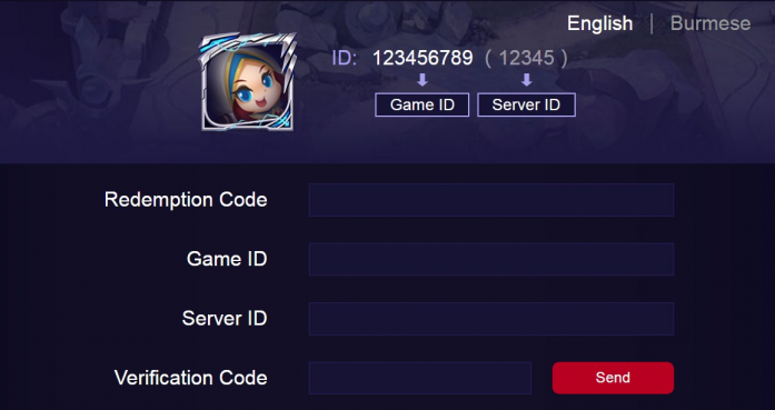 - Setelah masuk ke halaman tersebut, silahkan kamu masukan kode redeem ml yang telah kamu dapatkan di atas, lalu kamu masukan juga ID akun game Mobile Legends yang kamu miliki