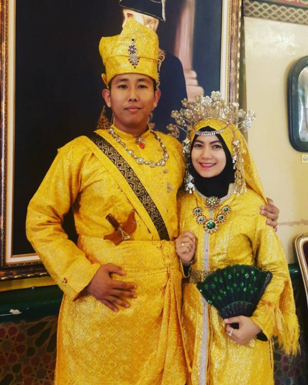 Di atas adalah pakaian adat Kepulauan Riau, Busana pria disebut Teluk Balangan dan perempuan disebut Kebaya Labuh.
