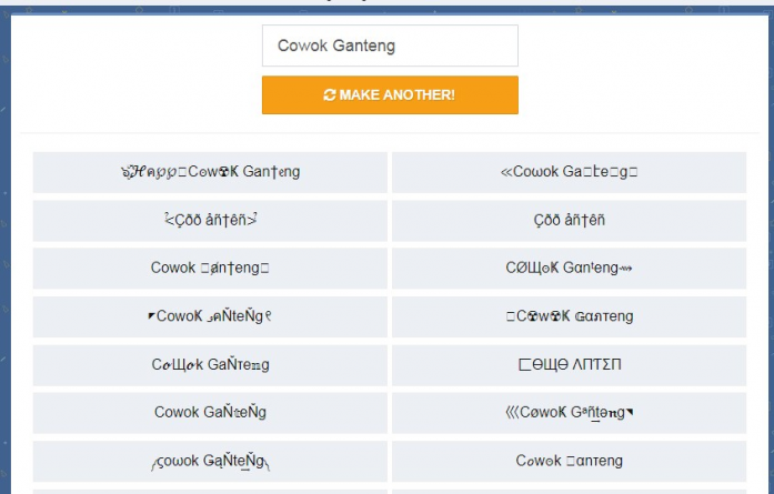 Untuk menggunakan aplikasi Fancy apk ini, kamu cukup memasukan nama di kolom text yang tersedia. Dan secara otomatis aplikasi ini akan membantu kamu menggenrate nickname yang unik secara otomatis berdasarkan nama yang kamu inputkan sebelumnya.