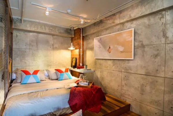 Kalau ini interior kamar tidur dengan semen ekspos.