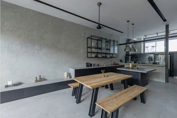 Beginilah penampakan bila dapur dengan semen ekspos.