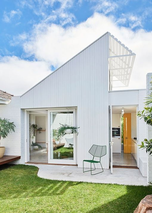 Dengan desain atap miring satu sisi dan warna putih yang menawan.