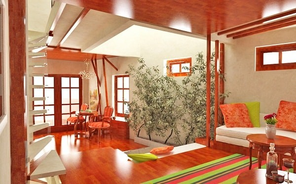Oleh karena itu, sebaiknya Anda menempatkan banyak objek yang berhubungan dengan kayu seperti pohon, bunga, ataupun tumbuhan di dalam ruangan. Objek-objek ini akan membantu Anda untuk merasa lebih segar dan sehat.